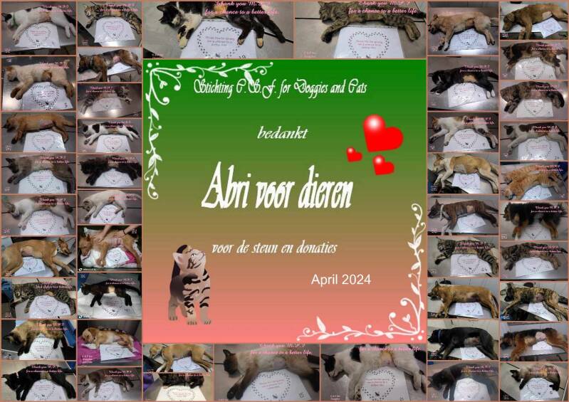 April 8 honden en 20 katten bij ADDAF en 6 dieren bij APA (klein foutje in de tekst op de foto)