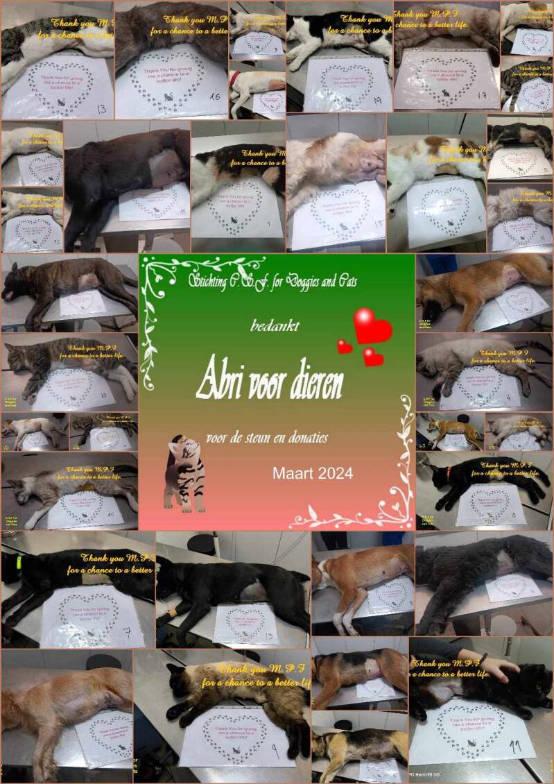 sterilisaties november 2024 mede dankzij Abri voor Dieren en MPJ 30 poezen 10 teven en 4 reuen en nog enkele dieren bij APA